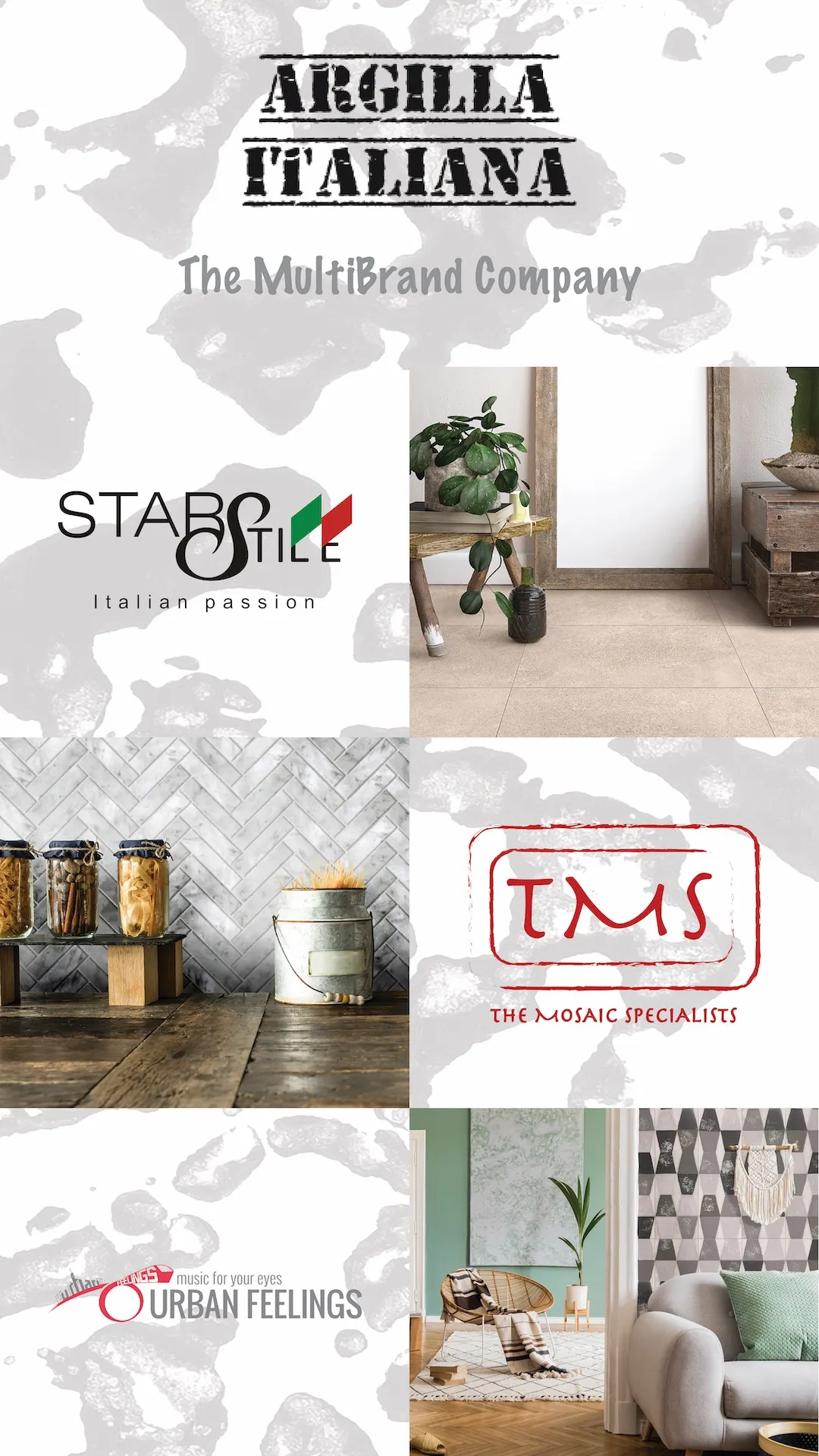Founded, owned, and managed by Italians, Argilla Italiana Limited is the owner of the internationally well-known brands Starstile, Urban Feelings, and The Mosaic Specialists, synonimous of Made in Italy quality and design in the tile business. All the products manufactured by the company are sold all over the world and imported by the most important wholesales and distributors. With offices in Italy and China, Argilla Italiana is developing every year new ranges of unique patterns exclusively designed in Italy by a specialized design studio, with a focus on market trends and aesthetics.