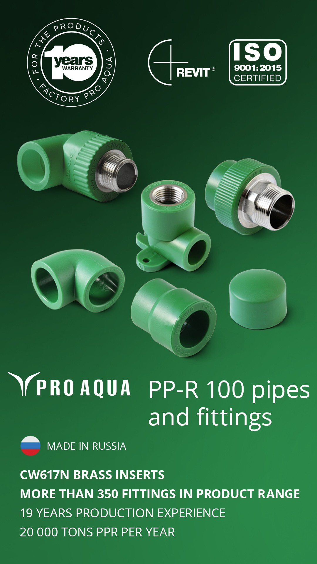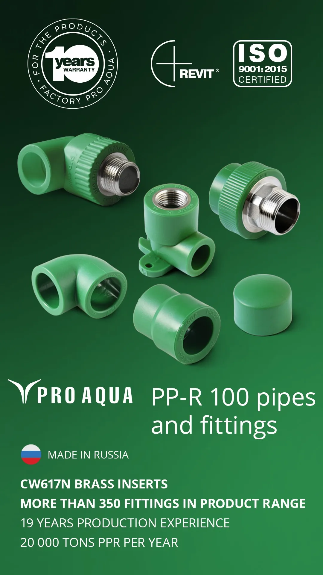 Products under the PRO AQUA brand are manufactured using the certified brands of raw materials from world-famous manufacturers, including Borealis, LyoundellBasell, Sabic, Sibur and others.